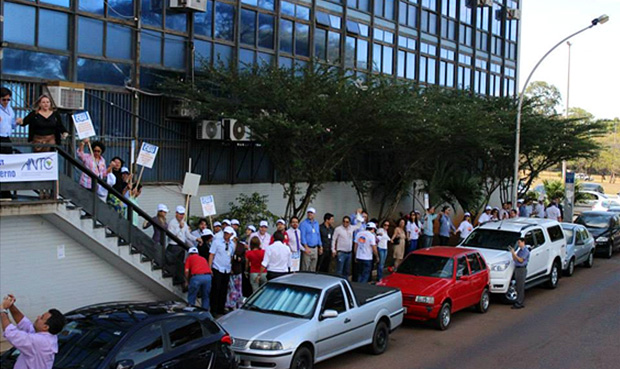 Com faixas e cartazes, os servidores protestaram contra cortes orçamentários e carência de pessoal, questões consideradas críticas. Cerca de 400 pessoas participaram do ato, que culminou em abraço simbólico à sede.