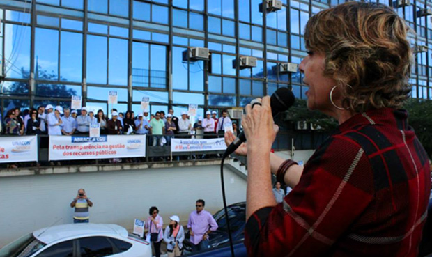 BRASÍLIA. “Estamos aqui na mais completa solidariedade para tirar, da invisibilidade, os problemas da CGU”. A confirmação de apoio da Deputada Federal Érika Kokay (PT-DF) resume bem o ato público realizado na manhã desta quarta-feira, 23 de julho, em frente à sede da Controladoria-Geral da União. Promovido pelo Unacon Sindical, o movimento “Abrace a CGU” reuniu servidores da Carreira de Finanças e Controle e movimentos sociais com o objetivo de denunciar as restrições ao cumprimento da missão institucional do Órgão.