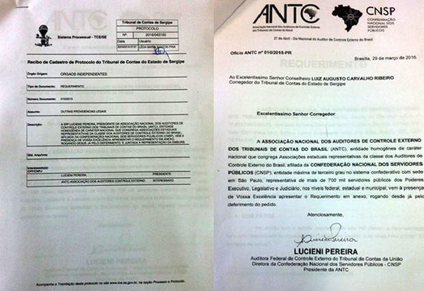 O Requerimento foi protocolado no TCE-SE sob nº 2016/043.150, endereçado ao Conselheiro Corregedor do TCE-SE LUIZ AUGUSTO CARVALHO RIBEIRO.