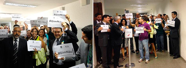 "Se indicado para o TCU, Gim fiscalizaria os processos referentes à lista de órgãos e entidades relatados pelo Ministro Valmir Campelo, dentre os quais se destacam as obras da Copa do Mundo de 2014", alertaram os diversos Auditores que participaram da vigília.