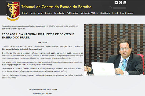 Veja aqui a publicação da mensagem do Presidente do TCE-PB em exercício!