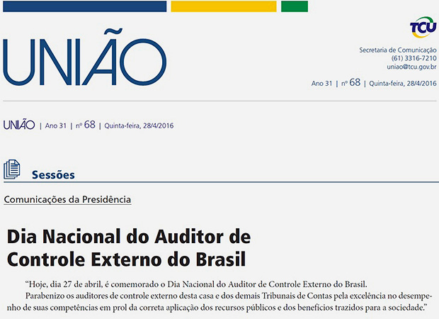 CLIPPING DE NOTÍCIAS SOBRE DIA NACIONAL DO AUDITOR DE CONTROLE EXTERNO